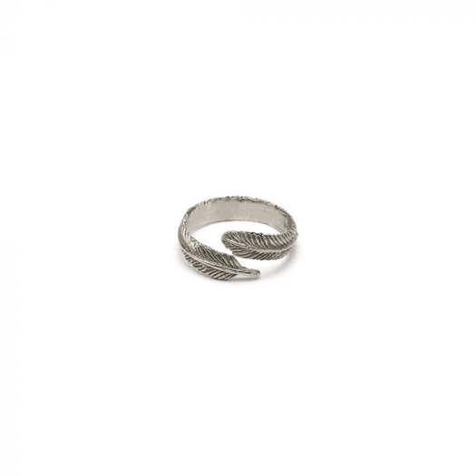 Anello con decorazione effetto piuma. Misura regolabile. Lavorazione artigianale.