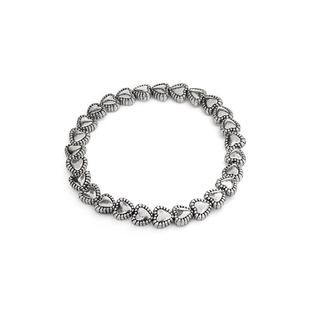 Bracciale elastico cuori merletto. Crea il tuo mix di bracciali elastici abbinando modelli diversi, leggeri e comodi da indossare. Placcato in argento. Nickel tested. Gioielli fatti a mano, unici e artigianali, perfetti per tutti i tuoi look o come idea regalo.
