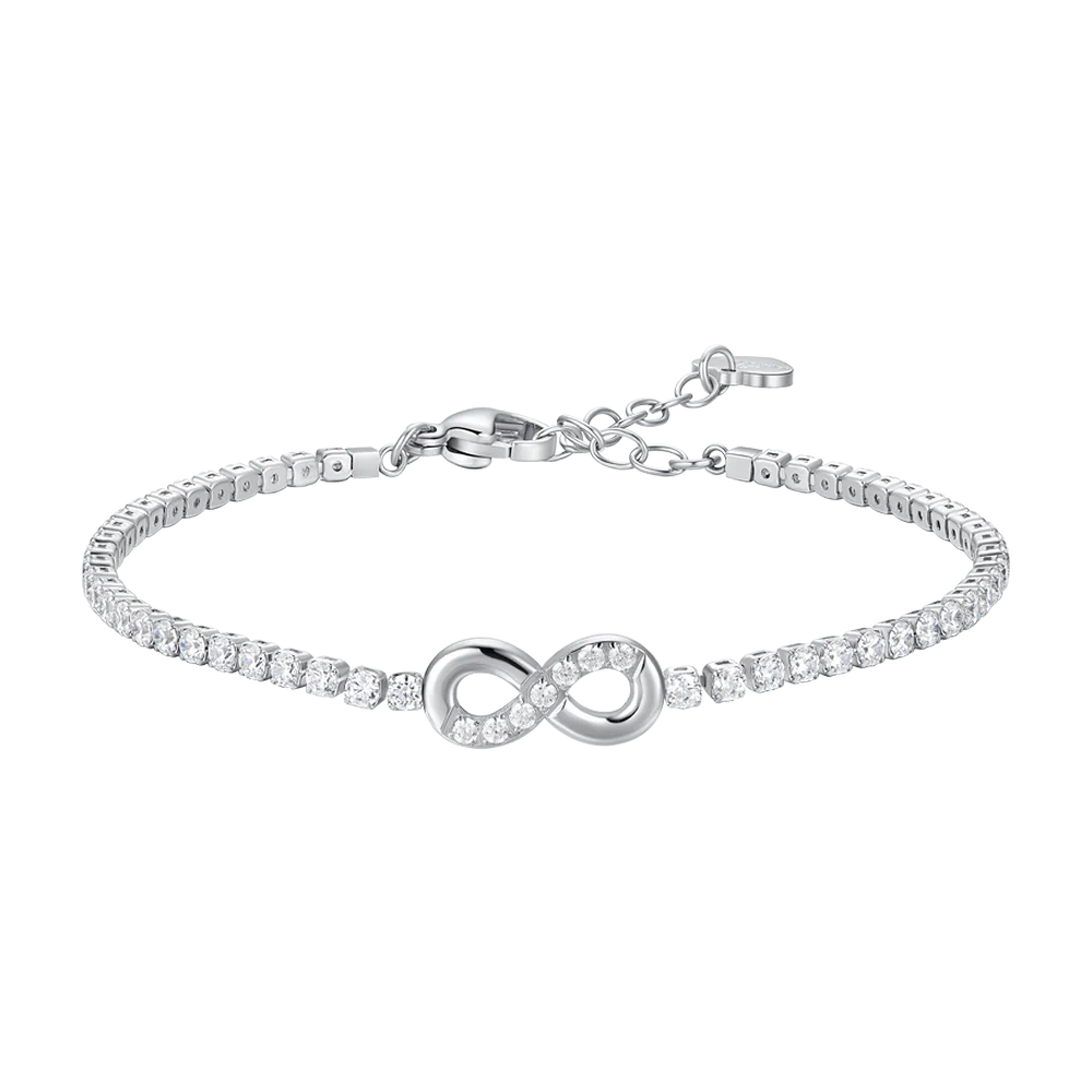 Bracciale Tennis Donna in Acciaio con Infinito e Punti Luce Zircone Bianco