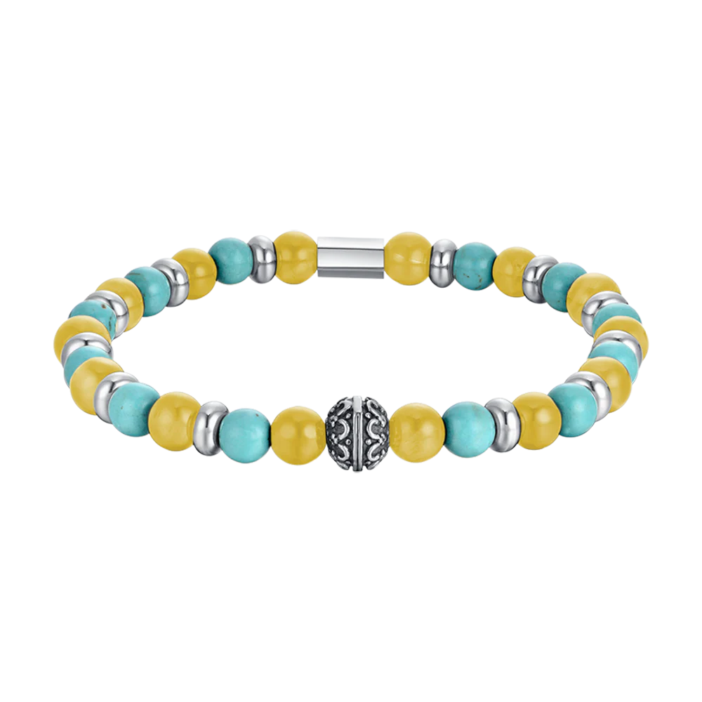 Bracciale Uomo Elastico con Pietre Turchesi e Gialle ed Elementi in Acciaio